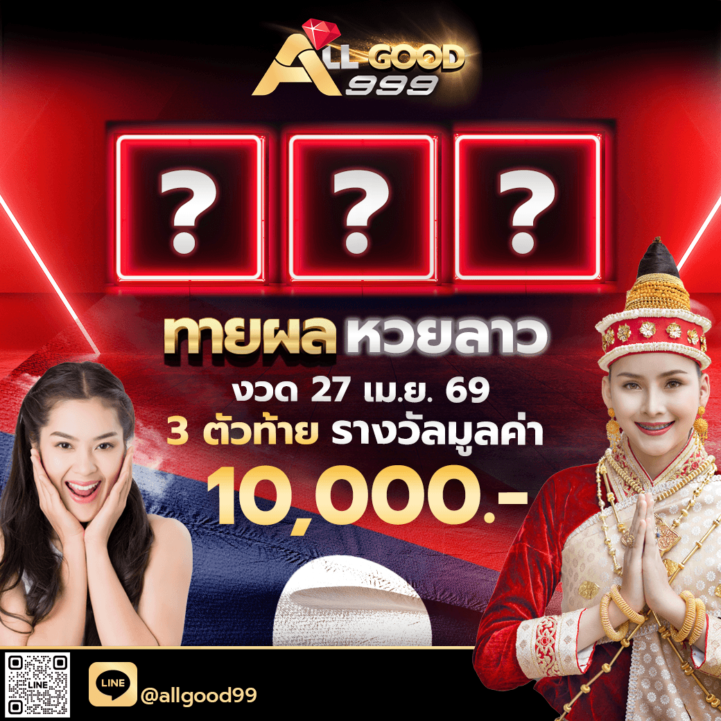 ร่วมลุ้นสนุกทายผลหวยลาวเลข 3 ตัวท้ายรางวัลที่ 1 ลุ้นรับเงินสด 10,000 บาท (หารตามจำนวนคนที่ถูกเท่ากัน)
